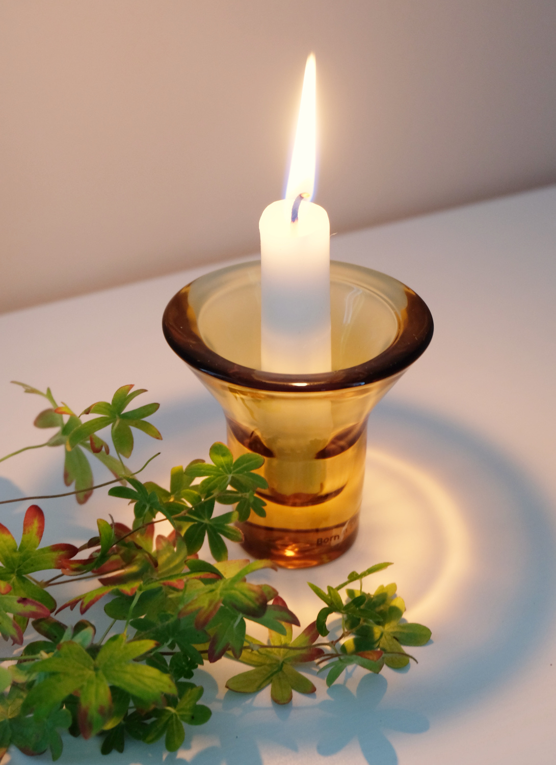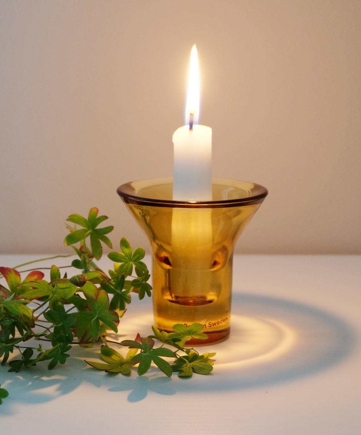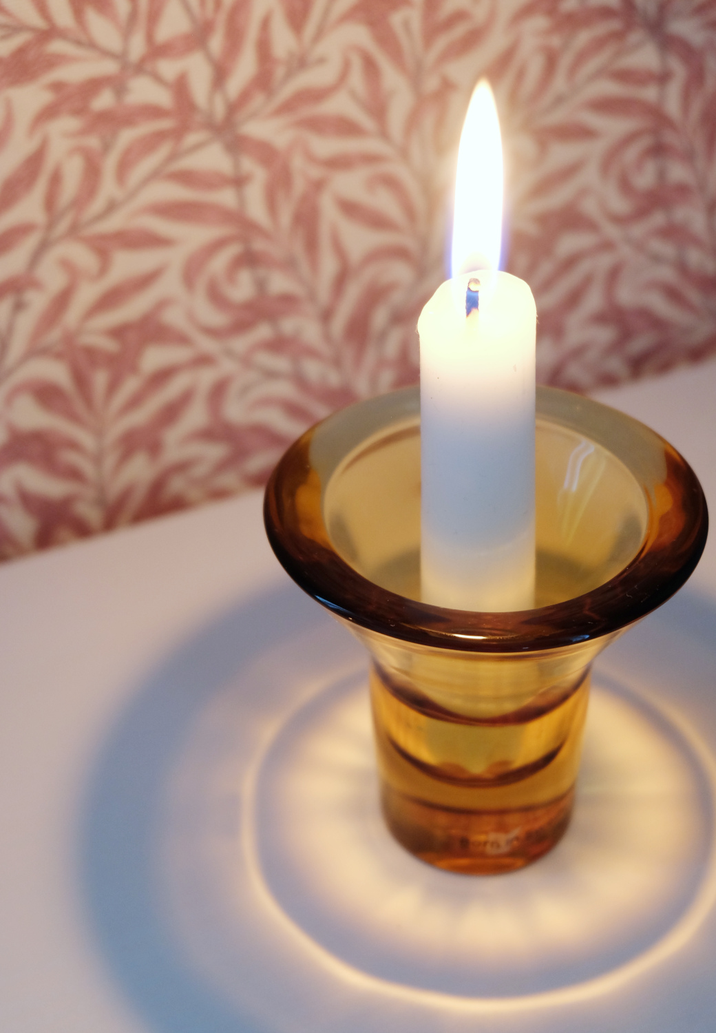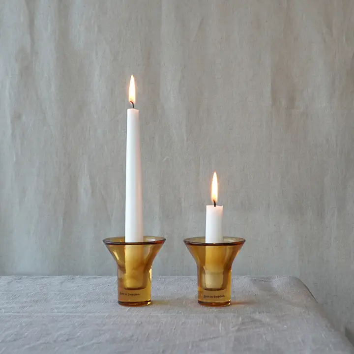 Laadukkaasta lasista valmistettu meripihkanvärinen kynttilänjalka antiikki- ja kruunukynttilälle. Täydellinen lahjaidea!