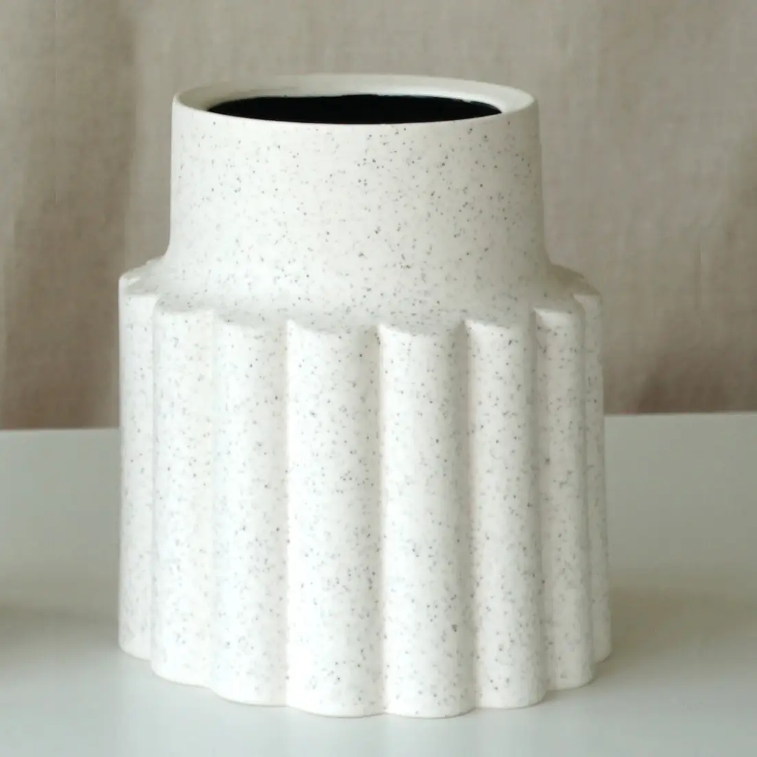 Veistoksellinen marmorinvalkoinen maljakko, jota voi käyttää koristeena ilman kukkiakin. Maljakon suunnitteluun on saatu inspiraatiota japanilaisesta tavasta huomioida jokainen yksityiskohta. Kaunis mattapinta ja kiiltävä musta sisäpinta luovat keskenään jännittävän kontrastin. Valmistettu Portugalissa korkealaatuisesta kivitavarasta.